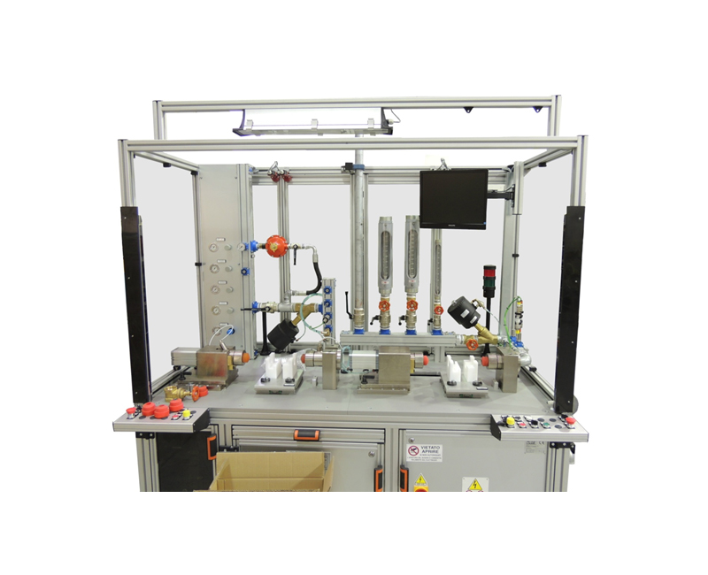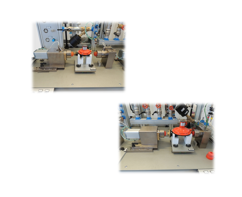 Bench for leak testing and regulation for different models of gas regulators.